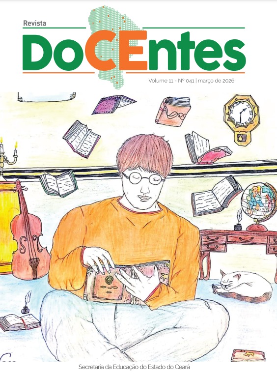 O desenho intitulado “O que a leitura desperta em mim?” da ex-estudante Geysa Barbosa Rufino, da EEMTI Professor Miguel Porfírio de Lima, ilustra a capa da Revista DoCEntes da Secretaria da Educação do Estado do Ceará. O desenho participou da Etapa Regional do Festival Alunos que Inspiram do ano de 2022.